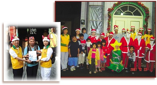 크리스마스와 새해가 다가오자 라이이 센터는 풍성한 크리스마스 선물을 준비했다. 동수들은 천사 분장을 하고서 라이이 향 이린(義林) 촌 교회의 지도 교사인 가오아이주(高愛珠) 양과 함께 그 지역을 집집마다 방문하며 스승님의 사랑과 관심을 전했다. 또한 우리는 교회 앞에서 마을 주민들과 함께 즐거운 크리스마스이브 행사도 가졌다. 다음날에는 부락 추장과 가오 양의 안배로 부락 게시판에 ‘수프림 마스터 텔레비전’ 포스터를 붙이고 스승님의 신간도 지역 8개 교회에 기증했다. 오후에는 동수들이 기증한 옷과 생필품을 지역 ‘사랑의 옷 보내기 협회’에 전달했다. 그 옷은 협회 자원 봉사자들을 통해 가난한 가정에 보내질 것이다.