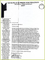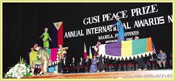 시상식 전날 밤에 열린 개회식 만찬에서 동수들은 초대 손님 맞이하는 일을 도왔다. 스승님이 준비하신 사랑의 선물도 특별 손님들에게 전해졌는데, 선물을 받은 손님들은 매우 행복해했다. 구시 재단 회장인 마뉴엘 모라토(Manual Morato) 씨는 동수들을 만났을 때, 스승님을 다시 뵙고 싶다는 깊은 갈망을 표현했다. 시상식이 진행되는 동안 많은 수상자들이 감동적이고 깨우침이 담긴 수상 소감을 발표했다. 그중 하나는 높이 인정받는 일본 의사이자 ‘아시아 의사협회(Association of Medical Doctors of Asia, AMDA)’ 회장인 스가나미 시게루(菅波茂) 박사의 수상 소감이었다. 국가 간의 상호 원조에 대한 생각을 피력한 그의 연설은 이 행사의 본질을 잘 드러내 주었다. 스가나미 박사는 1995년 일본 고베 대지진이 일어났을 때, 당시 필리핀 피델 라모스(Fidel Ramos) 대통령이 고베 시민을 돕고자 사심 없이 자신의 한 달 월급을 제공했던 일을 회상했다. 2006년 필리핀 남부 레이테(Southern Leyte)에 어마어마한 산사태가 일어났을 때와 레가스피(Legazpi)에 태풍이 강타했을 때 스가나미 박사는 이 두 지역에 AMDA 회원을 파견해 구호 활동을 펼쳤다. 그는 일본 국민들이 당시 AMDA의 필리핀 구조 활동을 적극적으로 지지했다면서, 이는 그들이 전임 필리핀 대통령의 무아의 행동을 기억하고 있었기 때문이라고 설명했다. 두 나라 사이에 오간 인류애와 우정의 아름다운 본보기를 듣고 관중들은 열렬한 박수를 보냈다. 2006년 구시 평화상 수상자인 피델 라모스 전 대통령도 이번 시상식에 참석했다. 시상식 마지막에 라모스 전 대통령은 영원한 평화와 지속 가능한 발전을 바라는 세계의 희망은 우리 모두에게 달렸다는 말로써 자신의 마음을 청중들에게 전했다. 이어서 그는 “우리 마음속에 진정한 평화를 건립하지 못한다면, 그리고 전세계 모든 사람들의 결집된 노력을 통하지 않는다면” 이 상은 아무 의미가 없을 것이라고 말했다. 그의 진심 어린 말은 2007년 구시 평화상 시상식의 마지막을 아름답게 마무리하기에 딱 맞는 결론이었다.